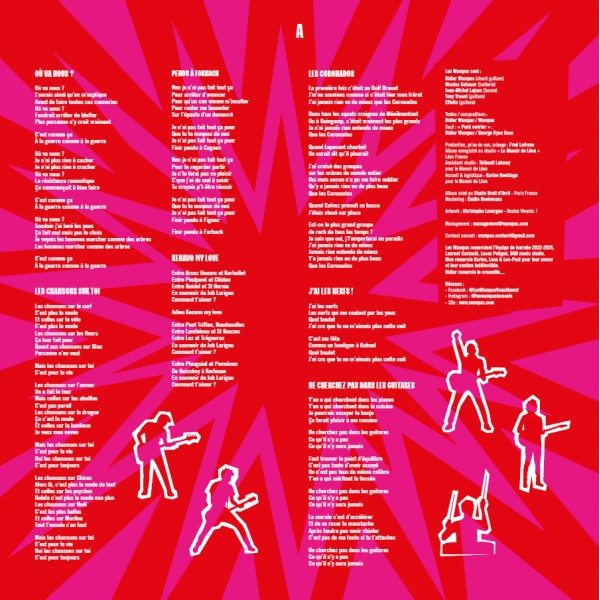 Les chansons parlent de Bretagne, Didier y a des origines familiales, du meilleur groupe du monde (« Les Coronados »), de demoiselles imaginaires, ou pas, (« Gaëtane »), sans oublier l’ami disparu Jean-Luc Le Ténia (qui apparaissait déjà sur le disque Chicoutimi), entre autres. Il y a quand même une première, une reprise de Didier Wampas par Les Wampas : « Punk ouvrier », qui est également titre d’une récente autobiographie du chanteur, parue chez Harper Collins.