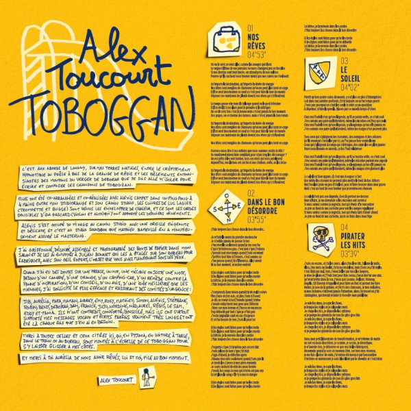 Le titre TOBOGGAN suggère une image forte : un mouvement, une glissade, un aller-retour entre la hauteur et la descente, entre le vertige de l’enfance et la réflexion adulte. Il évoque le jeu, le risque, la fraîcheur, la capacité à remonter ou à changer de pente. Au travers de ses 11 chansons finement revêtues de pop, de folk et de pulsations parfois rap et slam, TOBOGGAN est un disque où les mots comptent, dans lequel Alex confie un regard tendre posé sur le monde, sur nous, teinté de mélancolie et de malice, de poésie et d’espoir.
